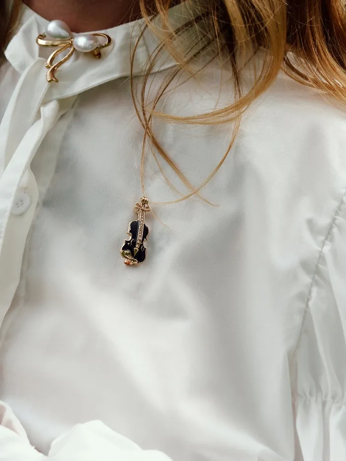 Брошь «Скрипка», цвет чёрно-белый в золоте — Характеристики