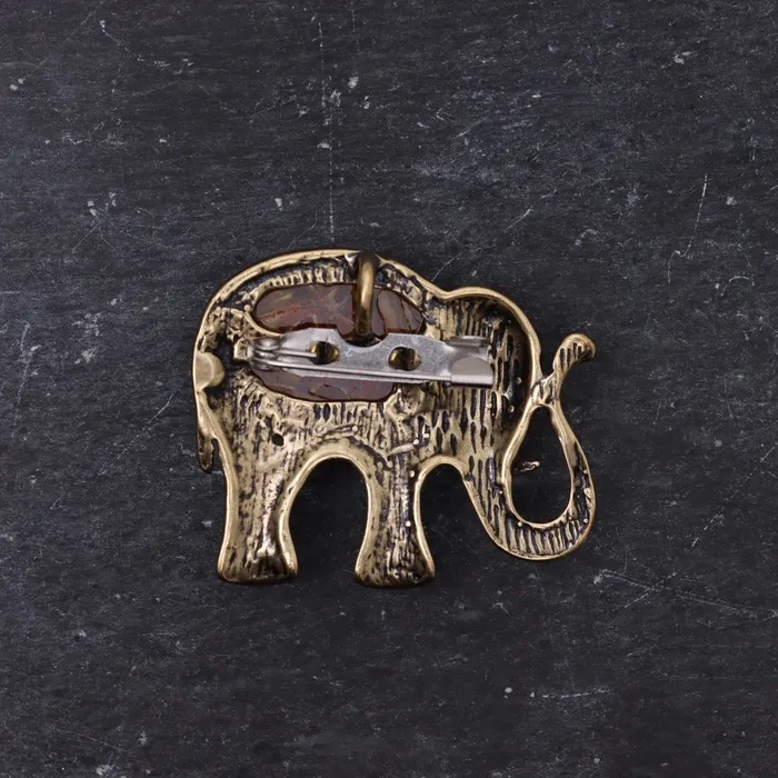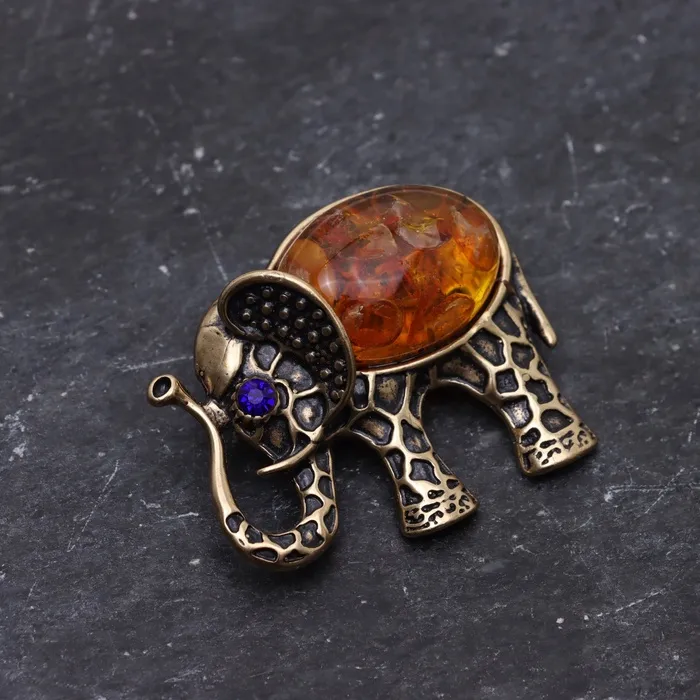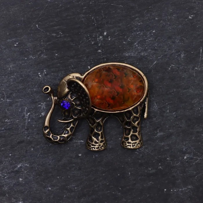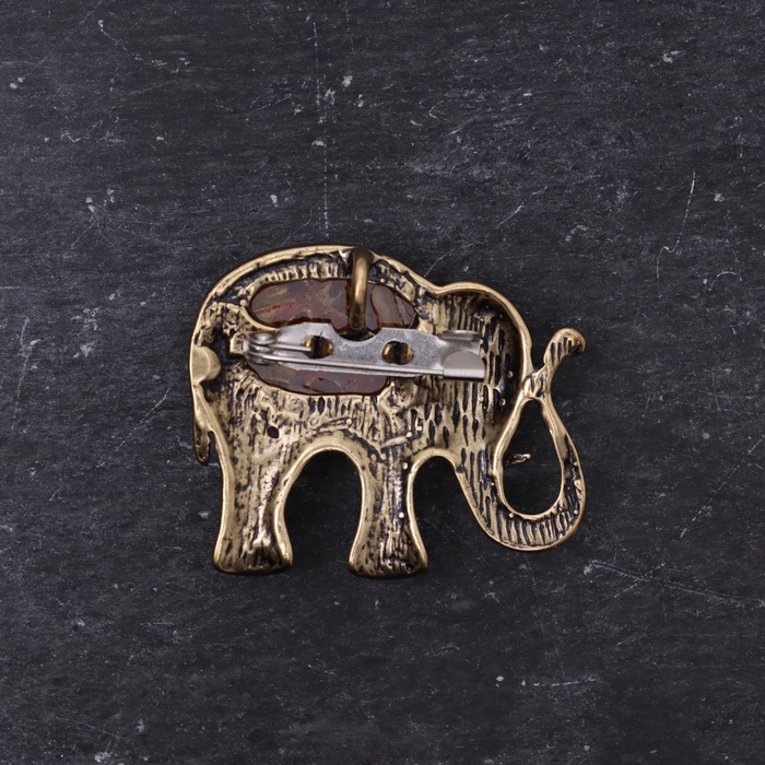 Брошь «Слон», латунь, янтарь — Характеристики