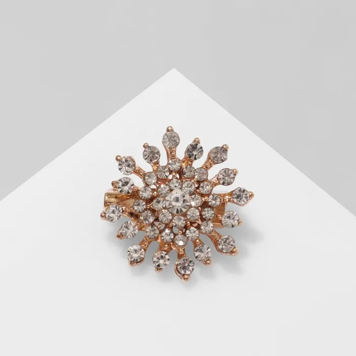 Размер всего 2 см делает украшение аккуратным и универсальным, подходящим как для повседневного ношения, так и для особых случаев, включая свадебные торжества. Стразы, бережно инкрустированные в дизайн, придают броши сияние, отражающее свет и создающее эффект мерцания.