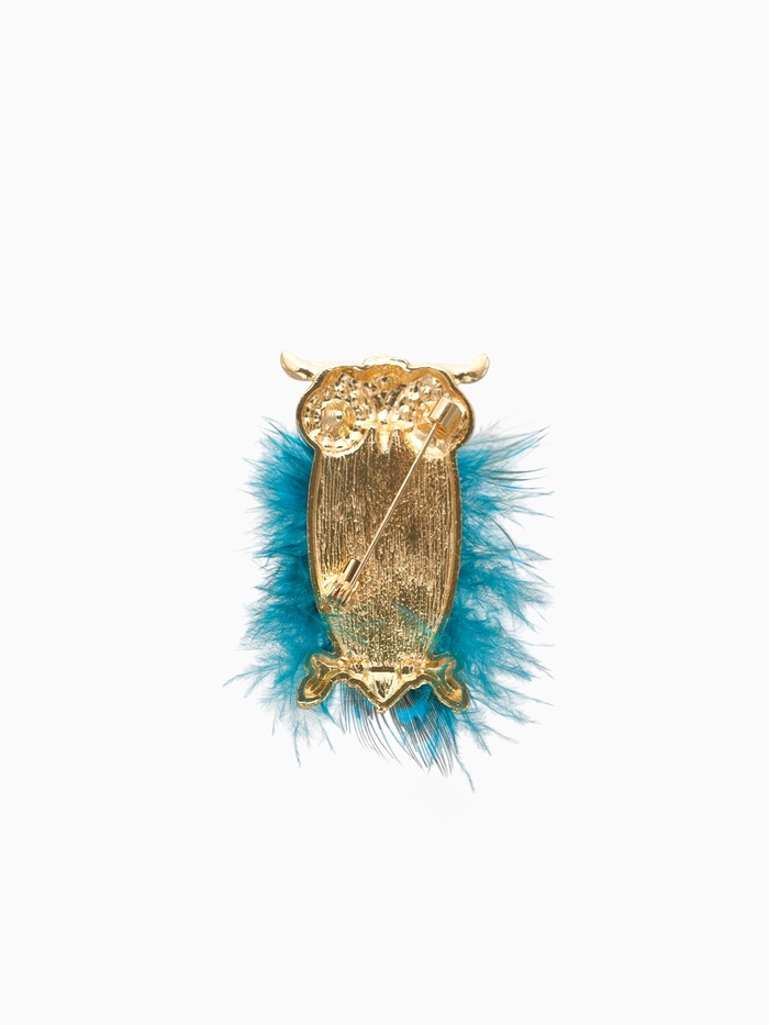 Брошь «Сова с пером», цвет морской в золоте — Характеристики