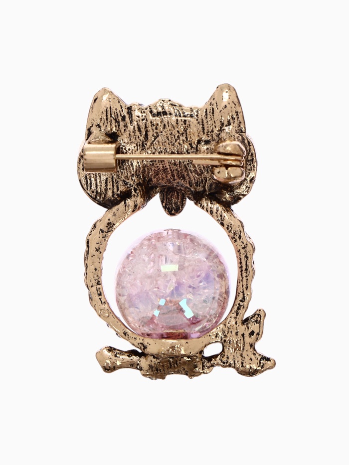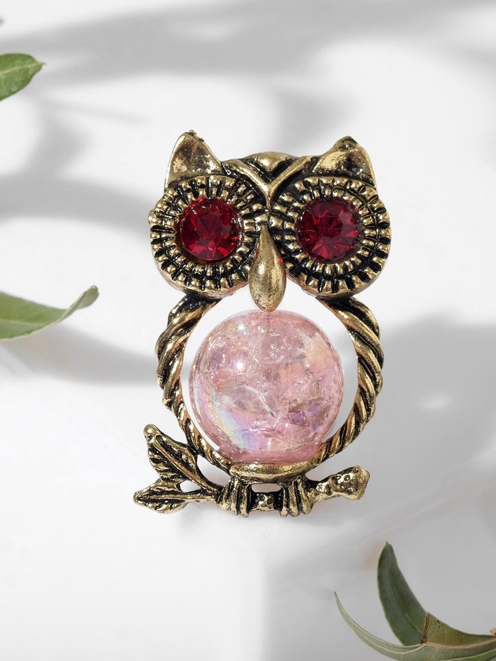 Брошь «Сова» шарик, цвет розовый в чернёном золоте — Характеристики