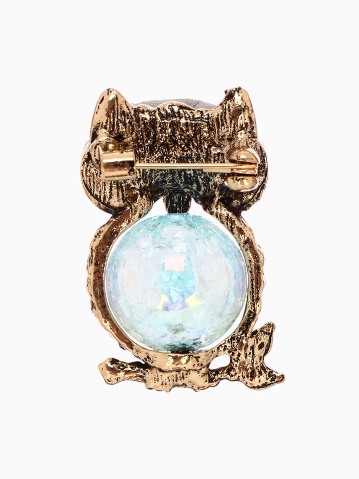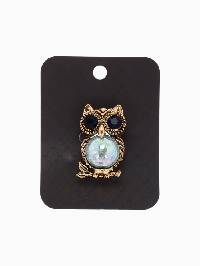 Брошь «Сова» шарик, цвет сине-голубой в чернёном золоте — Характеристики
