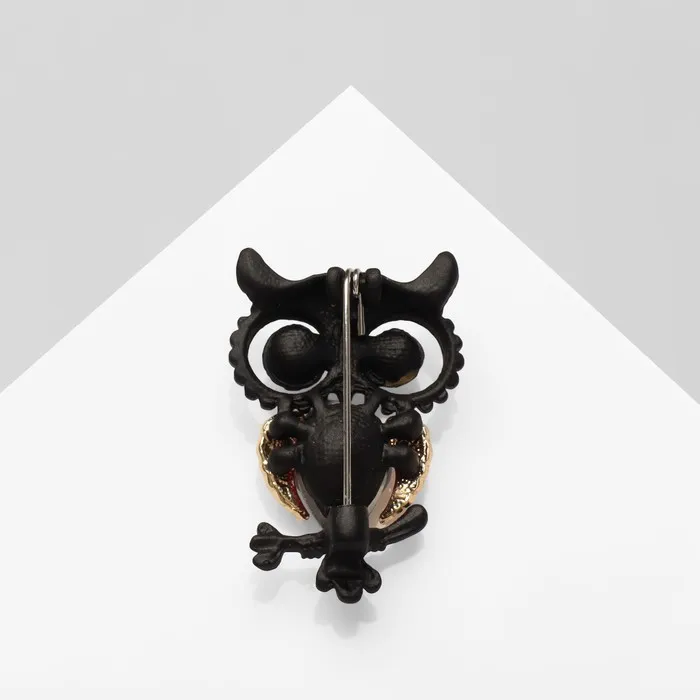 Эта изящная брошь с изображением совы в черном металле станет выразительным акцентом в вашем образе. Длина изделия 3,5 см позволяет носить её как на повседневной одежде, так и на праздничных нарядах, добавляя нотку загадочности и изящества. Яркие красные и разноцветные вставки из эмали, стекла и страз создают эффект живого и динамичного украшения.