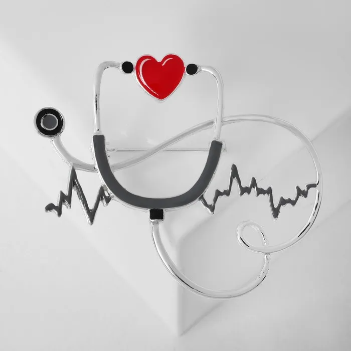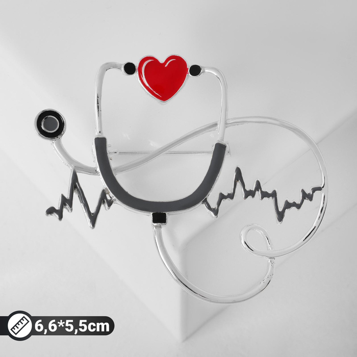 Брошь, выполненная в форме стетоскопа с изображением кардиограммы, объединяет в себе символику медицины и современный стиль. Красно-серый цветовой акцент на эмалевой поверхности гармонично сочетается с серебристой фурнитурой, создавая элегантный и выразительный образ. Длина изделия 6,6 см делает брошь заметной, но при этом изящной деталью, подходящей как для повседневного ношения, так и для профессиональных мероприятий.