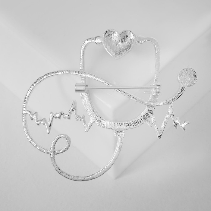 Брошь «Стетоскоп» кардиограмма, цвет красно-серый в серебре — Характеристики