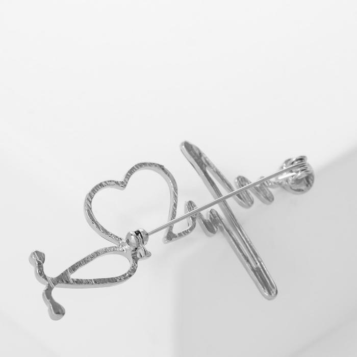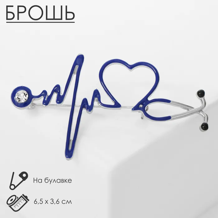 Брошь« Стетоскоп» кардиограмма, цвет синий в серебре — Характеристики