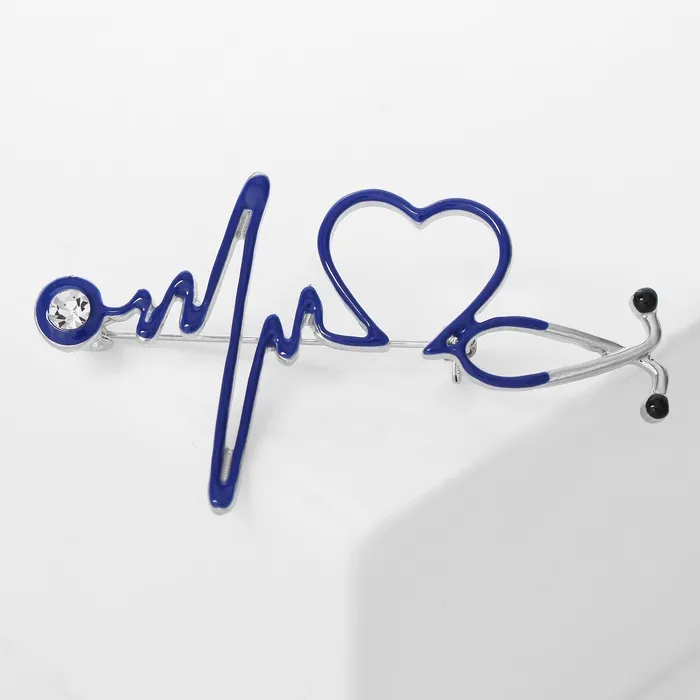 Эта брошь в форме стетоскопа с изображением кардиограммы воплощает профессионализм и преданность медицине в изящном синем цвете с серебристой фурнитурой. Длина 6,5 см позволяет ей стать заметным, но не громоздким акцентом в любом образе, подчёркивая индивидуальность и статус владельца.