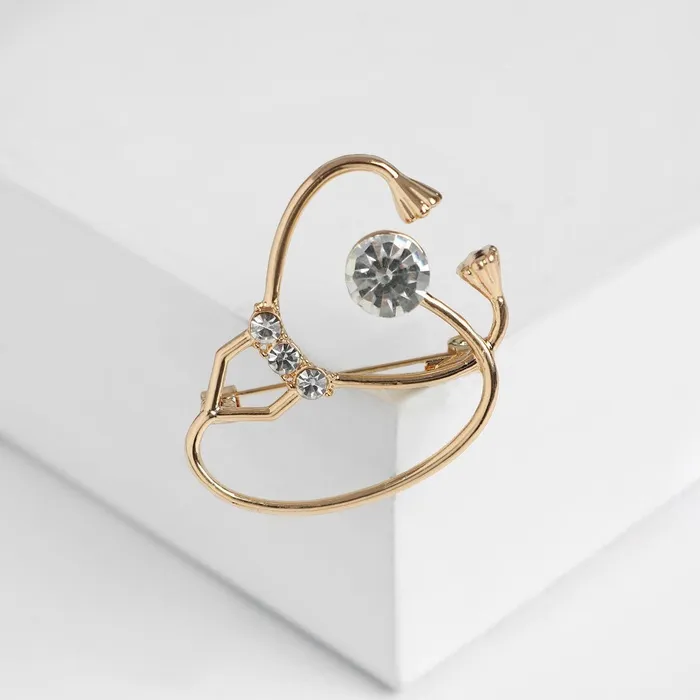 Откройте для себя уникальный аксессуар, который станет отличным дополнением к вашему образу — брошь в форме стетоскопа. Этот стильный элемент из белого металла с золотой фурнитурой идеально подойдет как для медицинских работников, так и для тех, кто ценит оригинальные украшения. Длина броши составляет 4 см, что делает её заметной, но не слишком громоздкой.