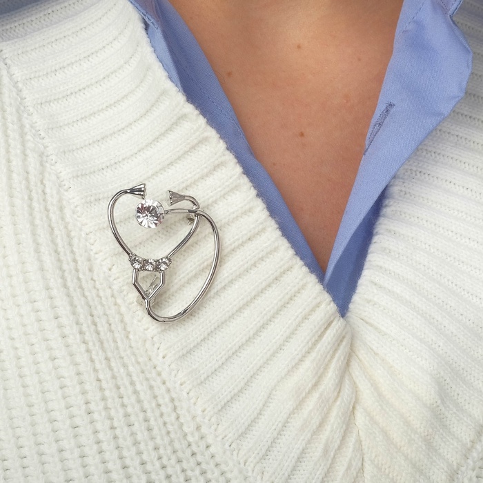 Брошь «Стетоскоп» крупный, цвет белый в серебре — Характеристики