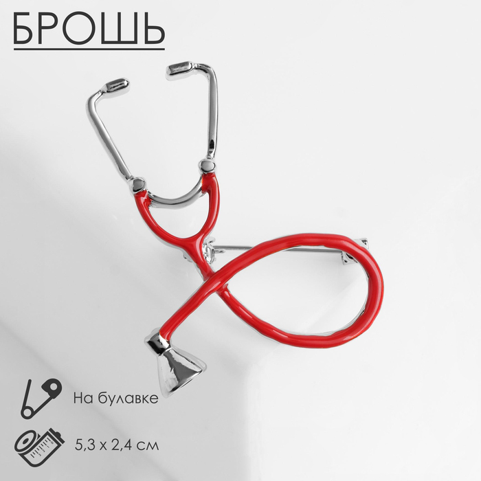 Брошь «Стетоскоп», цвет красный в серебре — Характеристики
