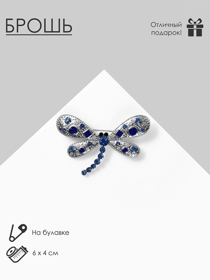 Брошь «Стрекоза» геометрия, цвет синий в серебре — Характеристики