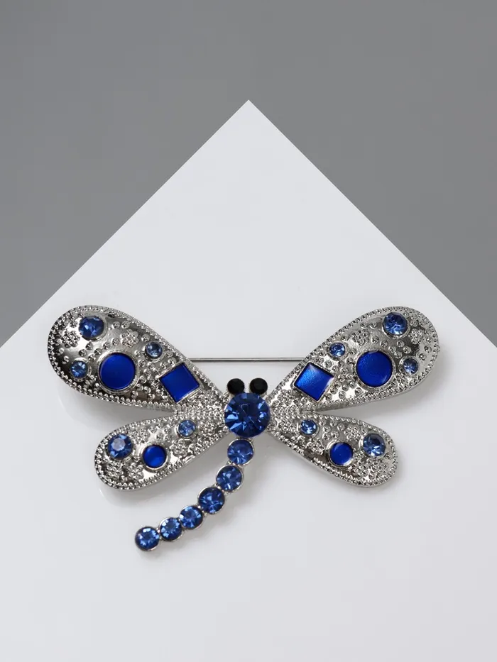 Лёгкость движения, изящество линий и сияние синих страз — всё это воплощено в броши в виде стрекозы, выполненной в геометрическом стиле. Эффектное сочетание серебристой фурнитуры и насыщенного синего цвета делает украшение выразительным акцентом в любом образе, будь то повседневный наряд или вечерний комплект.