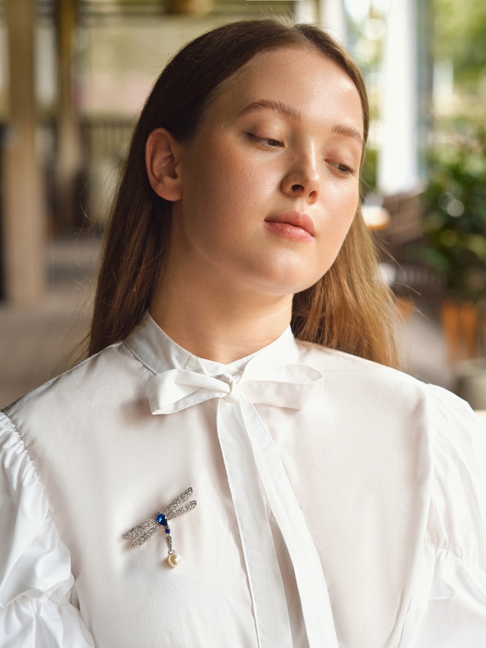 • Подвижный элемент: хвостик стрекозы оживляет украшение, добавляя лёгкость и игривость.