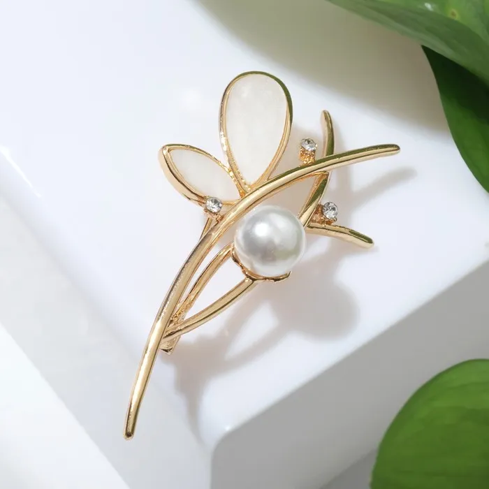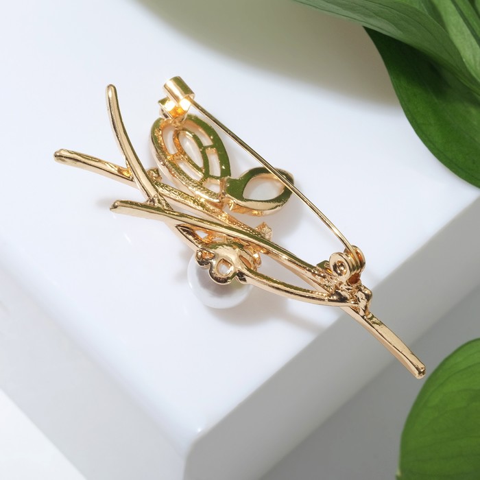Брошь «Стрекоза» с бусиной, цвет белый в золоте — Характеристики