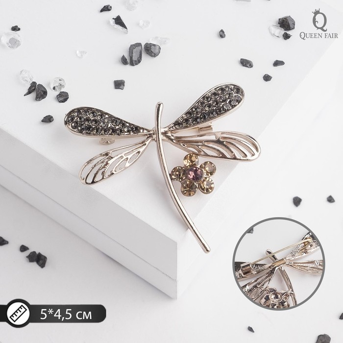 Брошь «Стрекоза» с цветочком, серо-коричневая в кофейном золоте — Характеристики