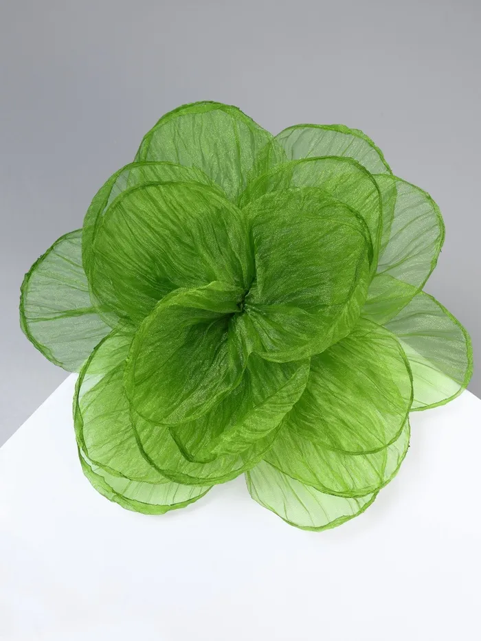 Брошь текстильная «Цветок» объемный, невесомый, цвет зелёный — Характеристики