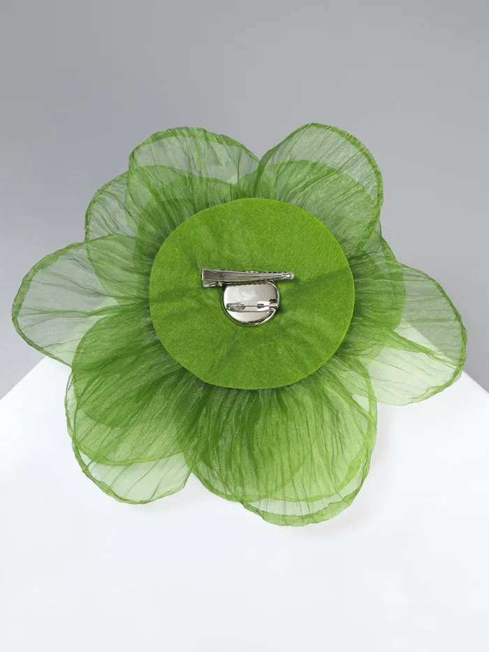 Объемная текстильная брошь в форме цветка выделяется лёгкостью и выразительностью. С длиной 22 см, она сочетает мягкую ткань и прочную металлическую основу с серебристой фурнитурой, создавая гармоничный и универсальный аксессуар. Этот вариант в зелёном цвете станет уместным дополнением гардероба женщин разных поколений — от мам и бабушек до дочерей и внучек, а также хорошим выбором для подарка на 8 Марта и другие праздники.
