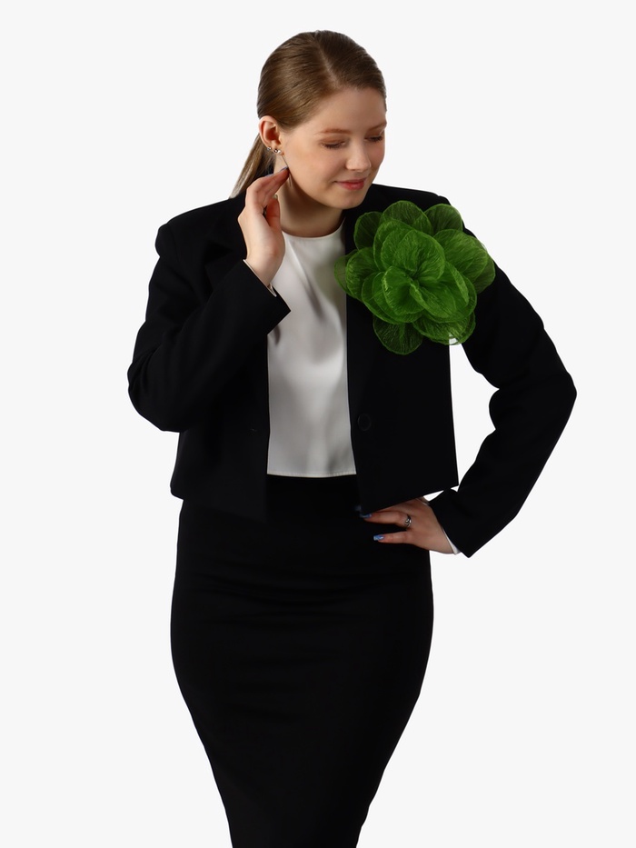 Этот аксессуар помогает подчеркнуть естественность и утончённость образа. Брошь в форме цветка приносит в повседневный стиль нотки природы и свежести, позволяя выделиться без лишних деталей.