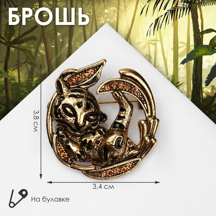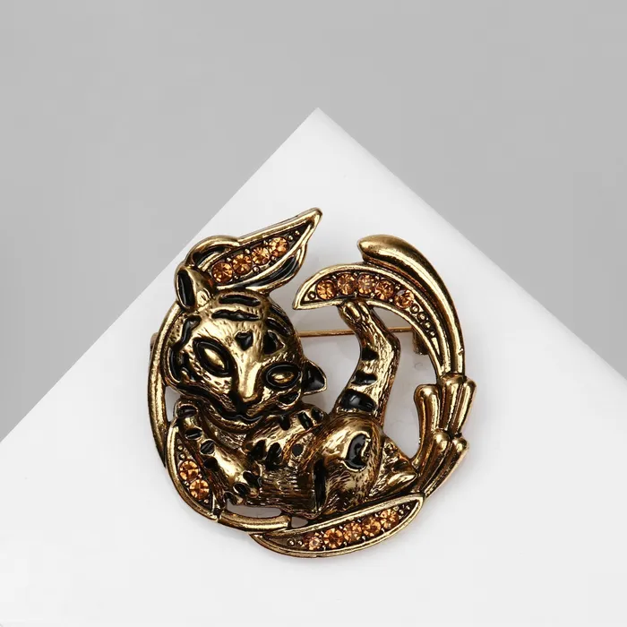 Эта изысканная брошь с изображением тигра, окружённого листвой, выполнена в светло-коричневом цвете и оформлена в чернёном золоте, что придаёт ей особый шарм и утончённость. Длина в 3,8 см делает её идеальным акцентом для любого наряда, будь то повседневный стиль или вечернее платье.