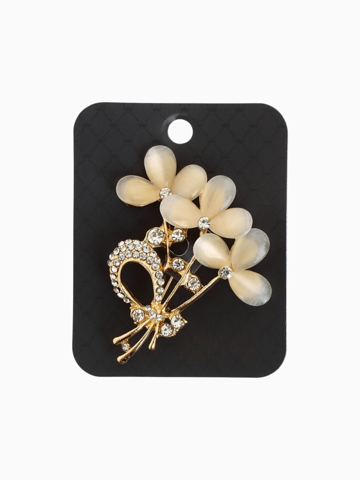 Брошь «Трилистники», цвет белый в золоте — Характеристики