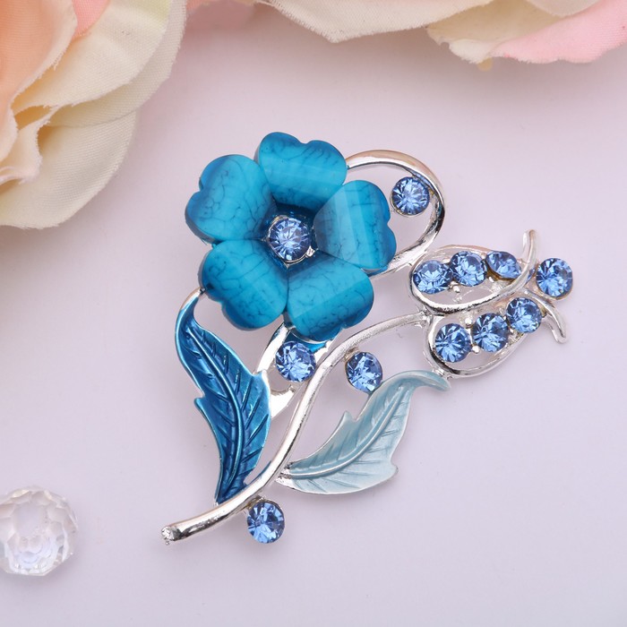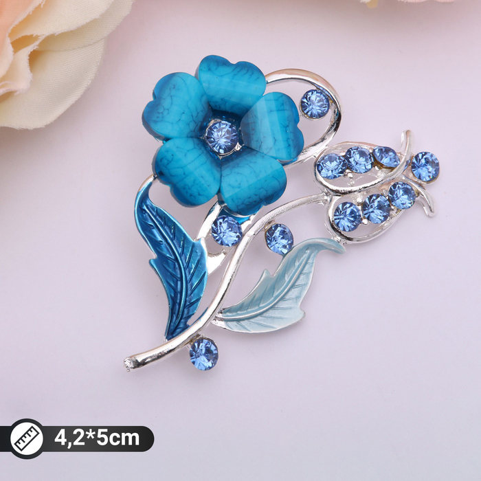 Брошь «Цветение», цвет морской в серебре — Характеристики