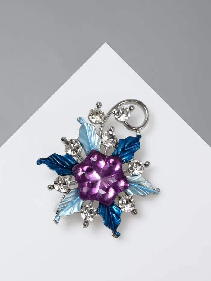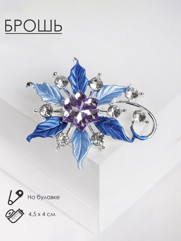 Голубые, синие и фиолетовые оттенки делают брошь универсальным аксессуаром, который легко сочетать с различными нарядами. Она станет отличным дополнением как для повседневного, так и для праздничного образа, подчеркивая вашу индивидуальность и стиль.