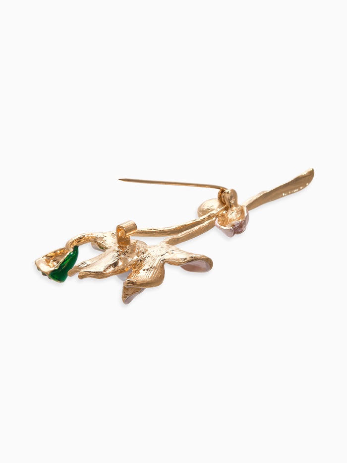 Брошь «Цветочная композиция», цвет бело-зелёный в золоте — Характеристики