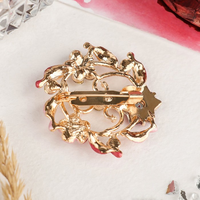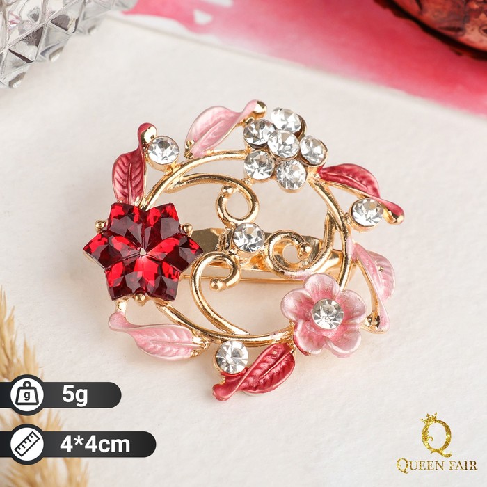 Брошь «Цветочная рамка» круг, цвет красный в золоте — Характеристики