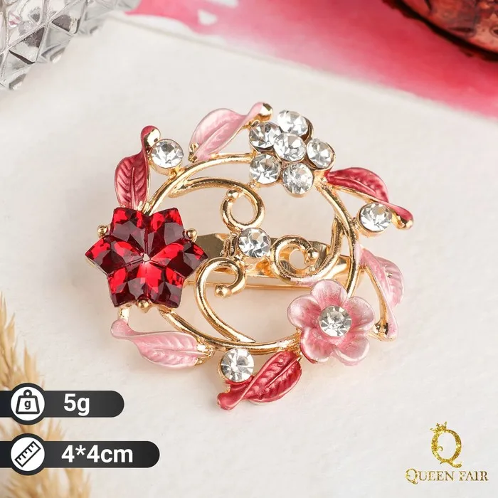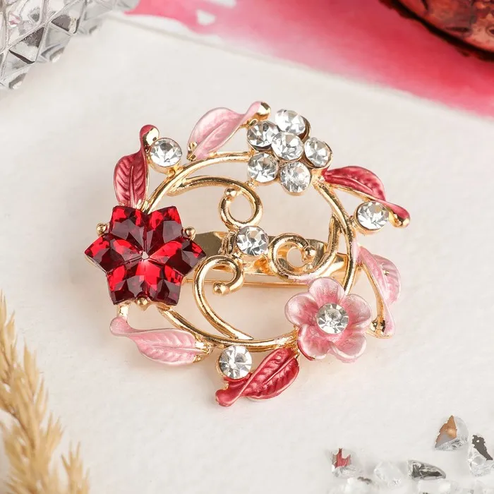 Изысканная брошь с цветочной рамкой в насыщенных красных и розовых оттенках станет ярким акцентом любого образа. Диаметр 4 см позволяет носить её как на повседневной одежде, так и на праздничных нарядах, подчёркивая женственность и утончённый вкус.