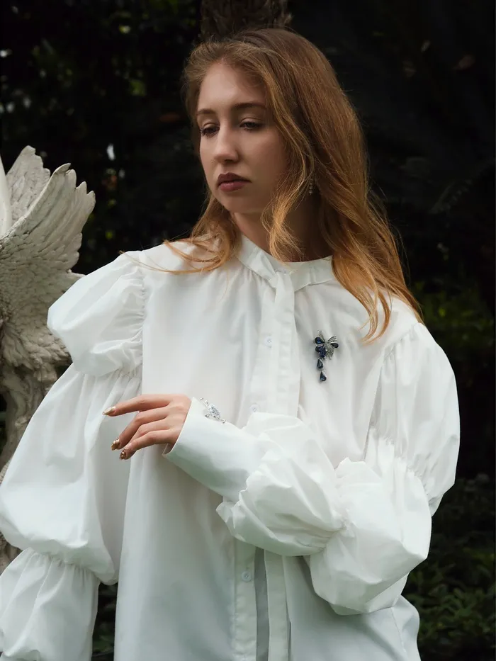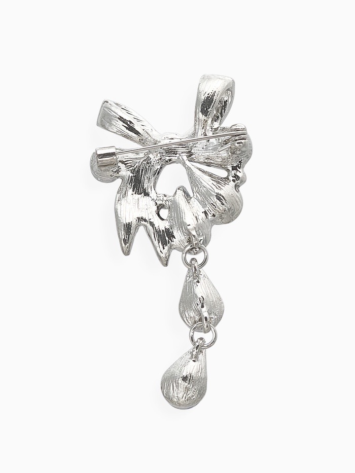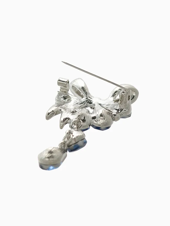 Брошь «Цветочная роса» с бантом, бело-синяя в серебре — Характеристики