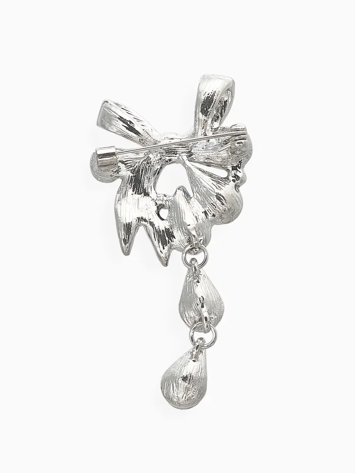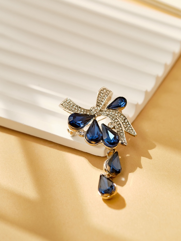 Погрузитесь в мир утонченной элегантности с этой восхитительной брошью в форме цветочной росы с бантом. Бело-синие стразы на серебристом основании создают гармоничное сочетание, которое привлекает взгляды и подчеркивает вашу индивидуальность. Длина в 5,8 см делает её идеальной для любого наряда, будь то повседневная одежда или наряд на особый случай.