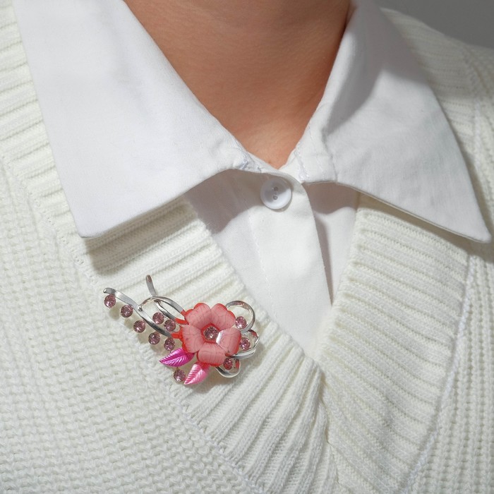 Нежность и утонченность воплощены в изысканной броши с цветочным мотивом, выполненной в мягком розовом оттенке и обрамлённой серебристым металлом. Этот аксессуар станет изящным акцентом в любом образе, добавляя свежести и лёгкости, словно капли утренней росы на лепестках цветов.