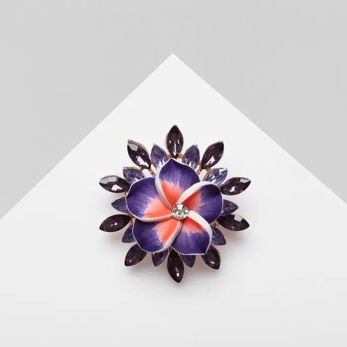 Брошь «Цветок» франжипани, цвет фиолетовый в розовом золоте — Характеристики