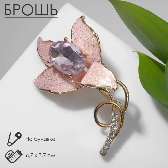 Брошь «Цветок» лилия драгоценная, цвет сиренево-розовый в золоте — Характеристики