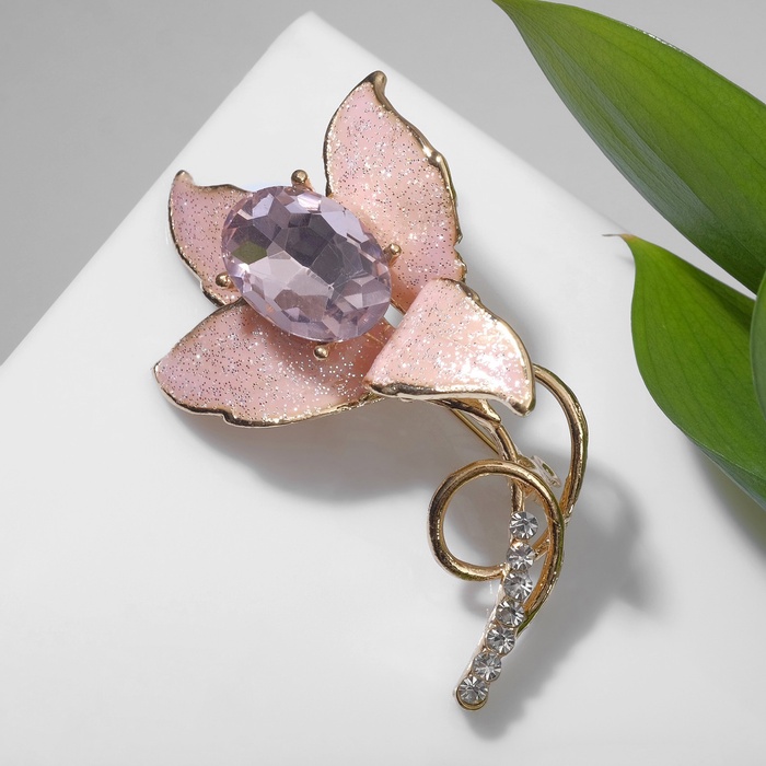 Брошь «Цветок» лилия драгоценная, цвет сиренево-розовый в золоте