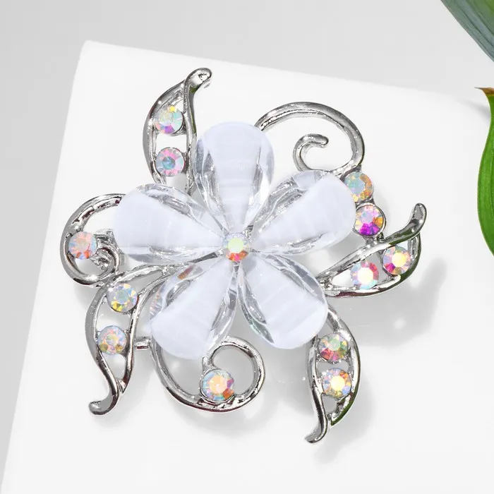 Брошь «Цветок» незабудка, цвет бело-радужный в серебре — Характеристики