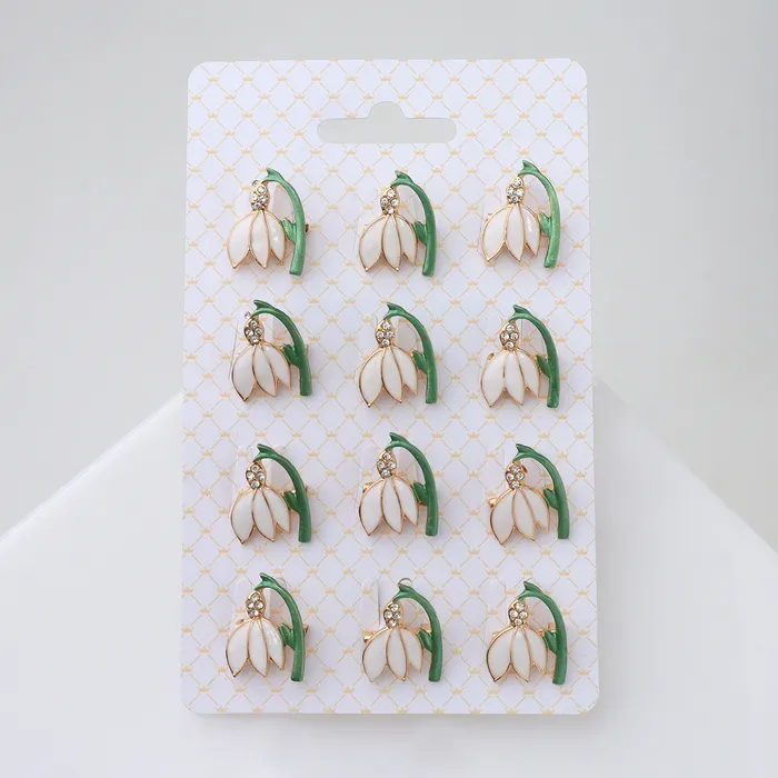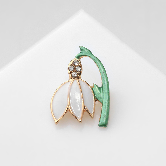 Брошь «Цветок подснежник», белый, зелёная в золоте — Характеристики