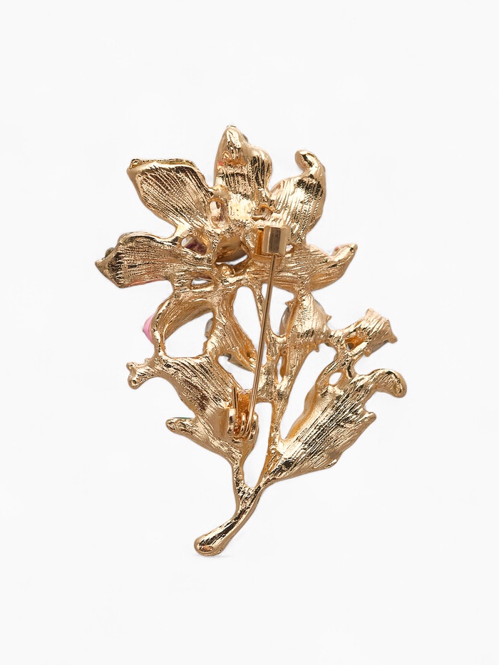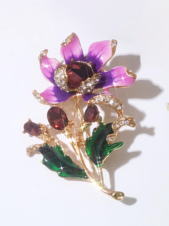 - Качество материалов: основа из металла гарантирует долговечность, а стразы и эмаль придают броши особую выразительность и сияние.