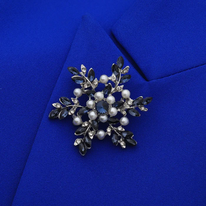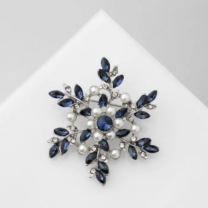 Представляем вашему вниманию изысканную брошь в виде цветка, которая станет идеальным акцентом для любого наряда. Эта элегантная бижутерия, выполненная из металла с вставками из искусственного жемчуга и страз, добавит нотку утонченности и шарма в ваш образ. Благодаря бело-синей цветовой гамме и серебристой фурнитуре, брошь легко сочетать с различными стилями и цветами одежды.