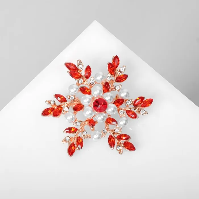 Брошь «Цветок» полярный, красно-белая в розовом золоте — Характеристики