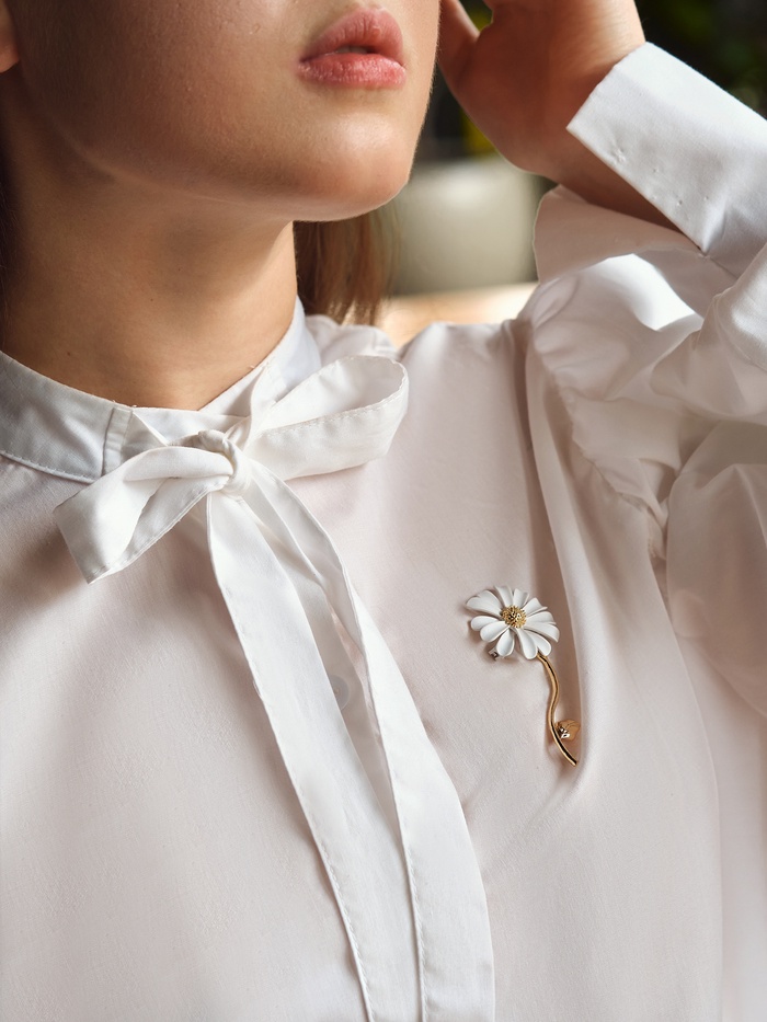 Брошь «Цветок» ромашка, цвет белый в золоте — Характеристики