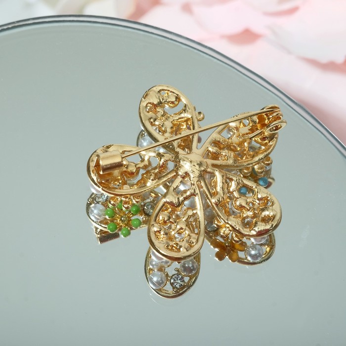 Брошь «Цветок» россыпь, цветная в золоте — Характеристики