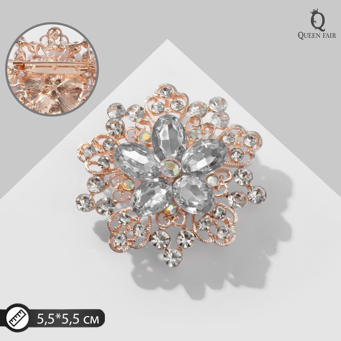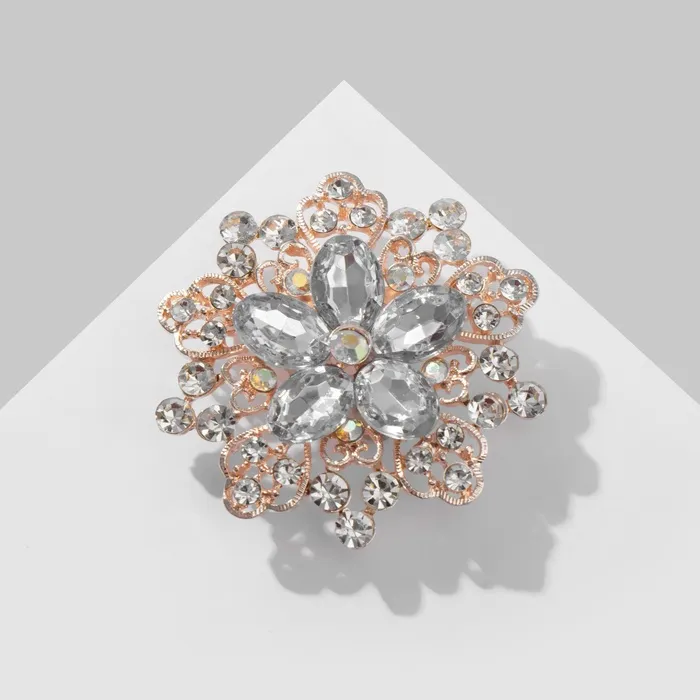 Эта брошь с ажурными лепестками в нежном белом цвете на фоне розового золота — воплощение утончённости и лёгкости. Её изящный дизайн напоминает живой цветок, который словно оживает благодаря переливам акриловых вставок и мерцанию страз. Размер 5,5 см делает украшение заметным, но при этом элегантным и удобным для повседневного и праздничного образа.