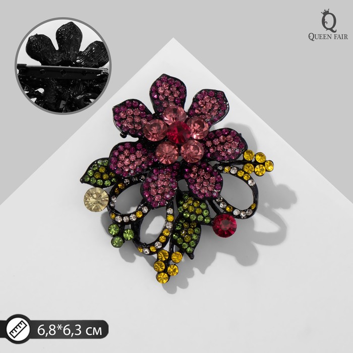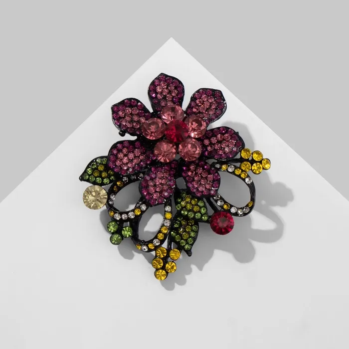 Брошь «Цветок» с завитками, розовая в чёрном металле — Характеристики