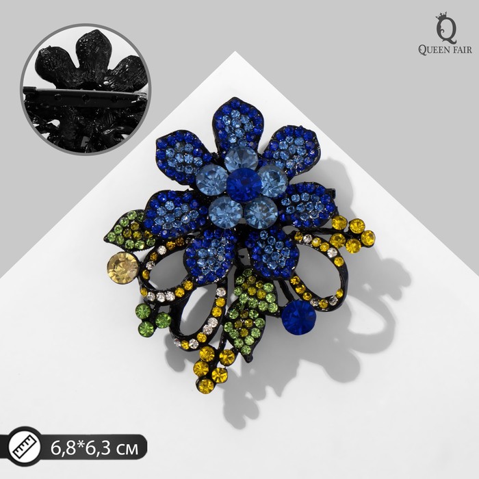 Брошь «Цветок» с завитками, синяя в чёрном металле — Характеристики
