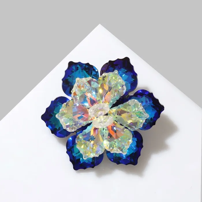 Брошь «Цветок» сказочный, радужно-синяя в серебре — Характеристики