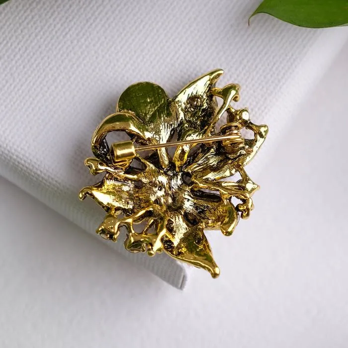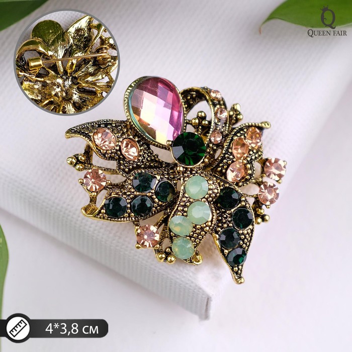 Изготовленная из качественного металла и украшенная стразами и стеклом, эта брошь радует глаз своими насыщенными цветами и золотой фурнитурой, которая придаёт ей элегантности. Она станет идеальным подарком для мамы, бабушки, внучки или дочки, подходящим для любого праздника, включая 8 Марта.