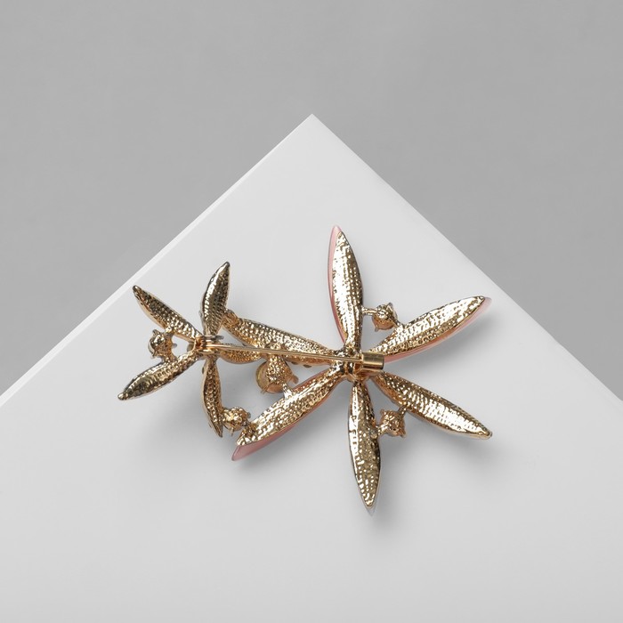 - Элегантный дизайн: сочетание бело-розовых цветов и золотой фурнитуры делает брошь универсальным аксессуаром для любого стиля.
