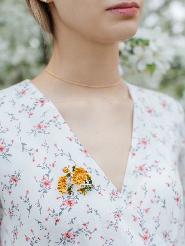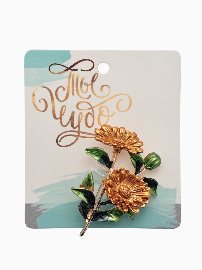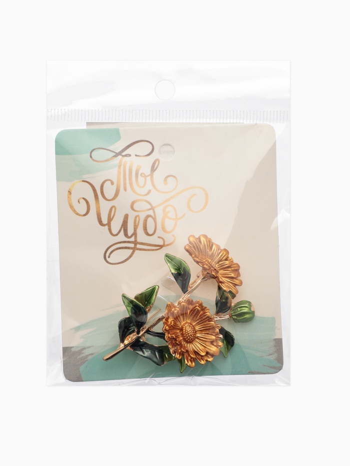 Брошь «Цветы» календула, цвет желто-зеленый в золоте — Характеристики