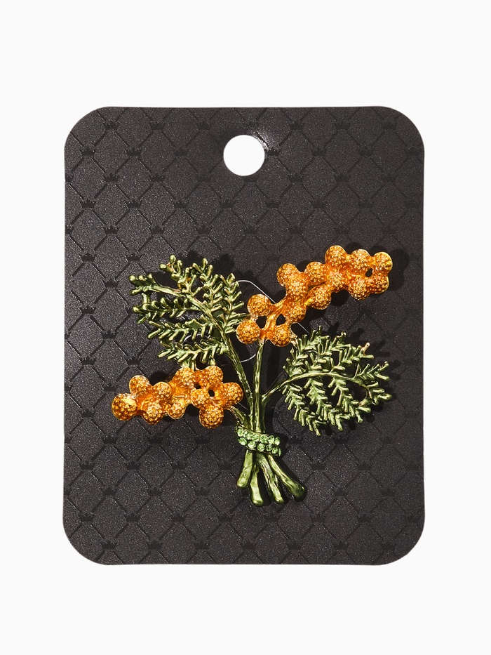 Позвольте вашему образу расцвести с очаровательной брошью в стиле мимозы. Изящное украшение, выполненное в тёплых оттенках зелени и солнечного золота, представляет собой миниатюрное произведение искусства размером всего 4 сантиметра. Эта брошка вдохновлена красотой весенних цветков мимозы, даря владельцу ощущение лёгкости и свежести.